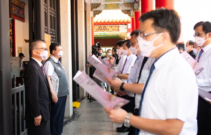 桃園市長鄭文燦(25)日上午前往桃園市孔廟,出席「桃園市111年度各級學校校長布達交接典禮」。鄭市長表示,孔廟所代表的人文教育精神是孔子所弘揚的「志於道、據於德、依於仁、游於藝」,以及有教無類、因材施教等全人教育理念,而其長期積累的教育傳統,更蘊含著人格完整性、社會關懷及社會實踐。鄭市長指出,今(111)年桃園市各級學校校長布達交接典禮,全國首創在孔廟舉行,這是很難得的經驗,期許校長們繼續帶領學校團隊,讓教育成為對未來的良好投資,成就每個孩子的夢想。