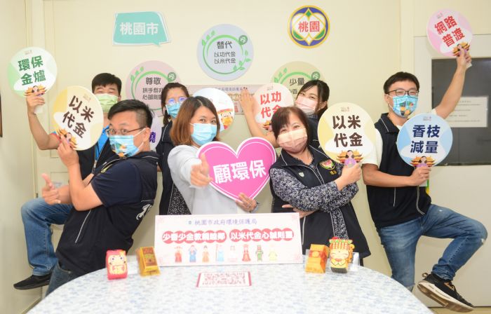 桃園環保局提倡以拱手祭拜、心誠則靈,以米代金、以功代金,少香、少金、少炮等環保祭祀作為。