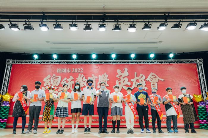 桃園市長鄭文燦4日上午於桃園綜合會議廳,出席桃園市2022總統教育獎英雄會活動,頒獎表揚「2022總統教育獎」本市獲獎的4位同學及獲推薦通過初審入圍的12位同學。鄭市長表示,教育可以翻轉人生,每個人的生命起跑點不同,生命會遇到困境、幽暗和困難,轉折之處需要很大的意志力與勇氣,同時也需要有人扶持、有人陪伴,因此,總統教育獎的設置非常有意義,是結合品格、學習表現及生命潛能的獎項,能夠獲獎的同學都非常不簡單。今日活動邀請歷屆總統教育獎得主共同出席,以英雄會的方式傳承經驗、互相激勵,鄭市長感謝所有出席的學長姐,並期勉所有學子能以獲獎者為榜樣,並珍惜生命及學習路上了不起的成就。