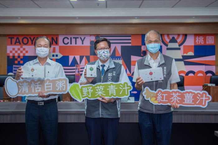 桃園市長鄭文燦17日主持市政會議,於會中推廣桃園市農會「新纖美日有機系列」產品。鄭市長表示,桃園市農會致力開發有機農業產業,發展在地農特產品,近期推出桃園「新纖美日」有機系列即時產品,包括「蔬釋人生-有機即溶蔬菜粉」、「即薑更好-有機薑紅茶」、「不費粥章-清恬白粥」等3種元氣組合產品,內容物均為即食包,相當方便,邀請市民朋友共同支持桃園在地農產品。