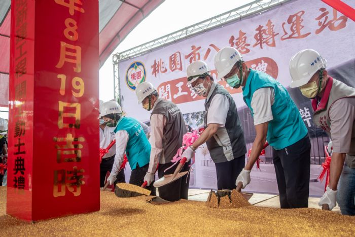 桃園市長鄭文燦19日上午前往八德區,出席「桃園市八德轉運站新建工程開工動土典禮」。鄭市長表示,八德大湳轉運站距離國道2號大湳交流道僅400公尺,因此定位為市區客運及國道客運轉乘站,基地面積1,250坪,外觀採工業風設計,以貨櫃與鋼構為主要建材,並使用再生材料,將來可回收再利用達成循環經濟目的。八德大湳轉運站工程興建經費7千7百萬元,預計明(112)年4月完工,除了引進既有的713、715、716、717等4條市區公車,並規劃702路線繞駛至轉運站,並將持續爭取9089、1962、1968、7504、7505等5條國道客運路線進駐,總計10條公車客運路線,便利八德鄉親往返雙北市及長庚醫院,讓公共運輸服務更加完善。