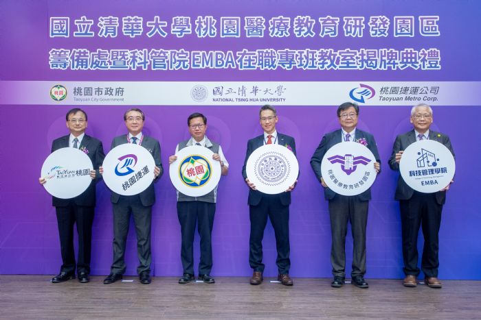 桃園市長鄭文燦20日上午前往桃園捷運青埔機廠行控大樓演講廳,出席「國立清華大學桃園醫療教育研發園區籌備處暨科管院EMBA在職專班教室揭牌典禮」,並與清華大學校長高為元共同簽署桃園市醫療教育研發園區合作意向書。鄭市長表示,市府與清大攜手克服種種挑戰,完成清華大學桃園醫療教育研發園區計畫審查工作,將於機捷A16站周邊設立清大桃園附屬醫院,病床數達910床,預計明(112)年6月前完成用地點交。清大今日也在機捷A17站行控中心舉辦園區籌備處揭牌典禮,同時在此開設EMBA課程,市府將與清大展開醫學、教育、產業領域等全面合作,共同成長。