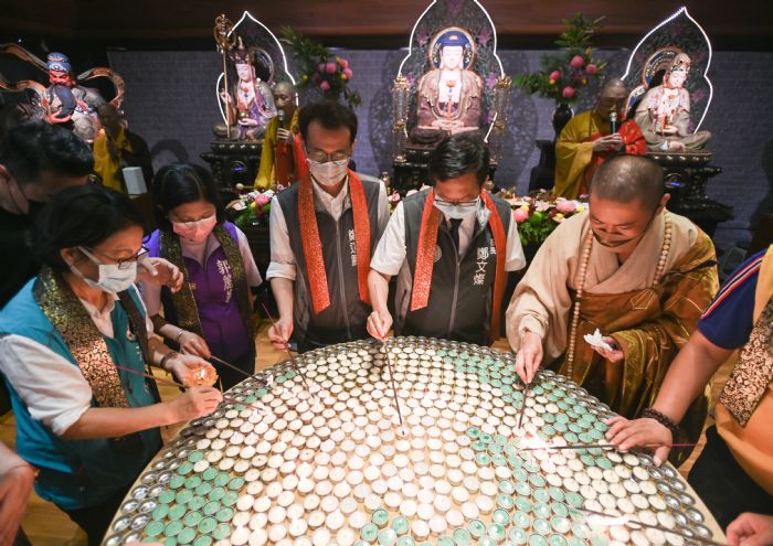 市長鄭文燦感謝住持本藏師父的宏願,此次舉辦「無國界祈安超薦報恩法會」,點燈祈願疫情結束並為十方大眾的健康祈福,盼世界發揮韌性、度過困厄。