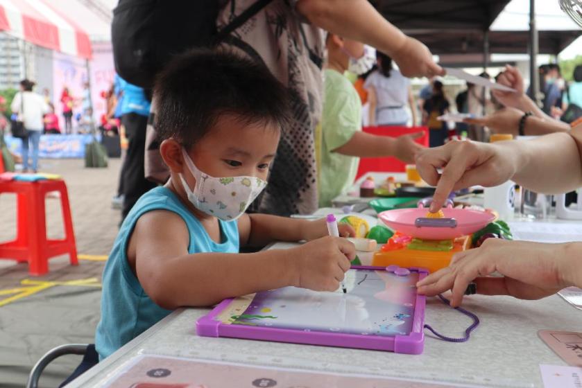 伊甸基金會承接桃市府社會局委辦之桃園市兒童發展通報轉介中心已邁入第10年,主要服務桃園巿0至6歲(疑似)發展遲緩或身障兒童之家庭,並提供家長專業的兒童發展諮詢。為走進民眾生活圈,推廣兒童成長發展觀念,伊甸於(20)日假八德置地生活廣場舉辦親子園遊會,吸引超過500人前來參與。在專業人員的陪伴下,透過輕鬆趣味的互動遊戲與關卡的設計,與家長共同觀察孩子的成長進度,藉此發掘疑似發展遲緩的孩子並及早給予適切的協助,並在親子同樂的過程中傳達互動的方法與技巧,活動同時邀請到伊甸輪標舞等身障團體演出與手譯員同步手譯,傳遞融合共好的理念與CRPD的精神。