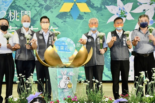 北部最大的浪漫「韭月雪」降臨桃園大溪!大溪區為北部韭菜產區最大的種植專區,為加強行銷特色產業、推廣農遊觀光,桃園市政府於今年度偕大溪區公所、大溪區農會、水與綠休閒發展協會擴大舉辦「2022桃園韭菜花節」,29日於桃園市政府綜合會議廳舉辦記者會,開場以「九月雪紛飛」為主題舞出在地特色,同時由桃園市政府高安邦副市長帶領在現場貴賓一起「把韭問月」綻開美麗花朵,為桃園韭菜花節拉開序幕。