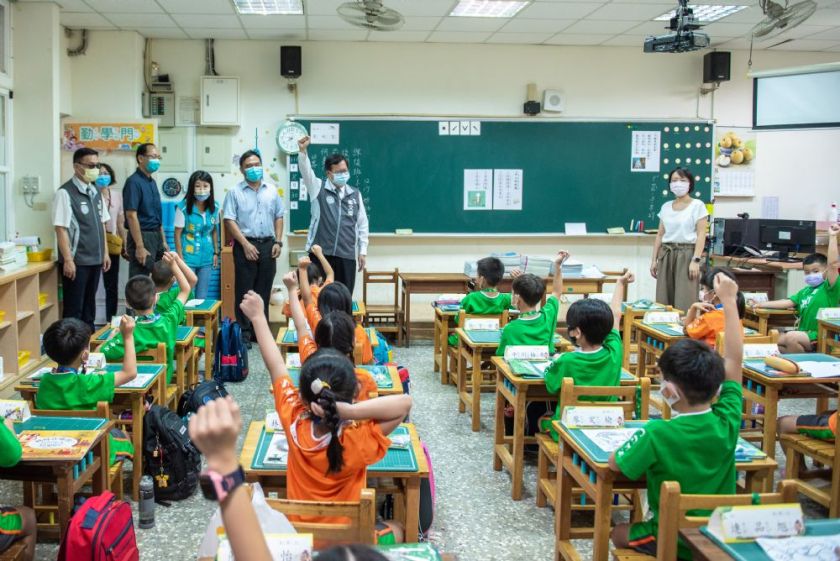 鄭市長特別檢視學校健康中心防疫物資整備情況,以及幼兒園教室各項防疫工作;此外,他也到一年級教室歡迎小一入學新生,邁向人生另一個學習階段,並準備了童趣圖書及實用文具袋親自送給小朋友們,期勉大家未來都能開心學習。包括市府教育局長林明裕、桃園區長洪清淵、成功國小校長李志鵬等均一同視察。
