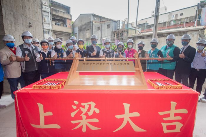 桃園市長鄭文燦6日下午前往中壢區,出席「中壢區中興巷公辦都市更新案上梁典禮」。鄭市長表示,位於中壢區康樂路及中榮路交口的中興巷公辦都更案,為桃園首件開工、第二件上梁的公辦都更案。本案基地面積3,059平方公尺,原為老舊警察宿舍,市府與原本6戶警眷協議搬遷,並以公辦都更方式引進民間資金,107年與昇陽建設企業股份有限公司簽訂實施契約,拆除後先規劃臨時停車場,預計興建地上20層、地下3層建築物。自109年4月開工至今,工程進度穩定,今日完成上梁後,預計明(112)年7月完工,113年入住。鄭市長指出,其中市府棟將設置社會住宅,以及派出所、市民活動中心及樂齡學習中心等公益設施,市府未來也會持續整合公私有土地,期盼透過都市更新帶動城市的發展。