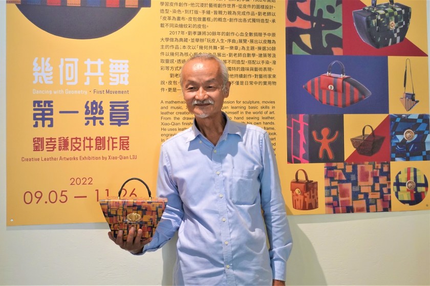 數學幾何也能與時尚結合嗎?曾是數學老師的劉孝謙,運用幾何與數學的概念,創作出多款兼具時尚與實用的包款。本次他揀選40餘件以幾何為靈感的創作進行展出,像是作品《積分大意》是老師從皮雕領域跨入手染及噴畫皮件的第一件作品,以微積分運算不規則造型面積為創作概念,作品蓋上還寫著積分演算公式,十分有意思!有學生笑稱原來看展也無法擺脫微積分噩夢,更有理學院的同學表示:「看展看到一半,就不自覺開始驗算這個算式是不是正確。」