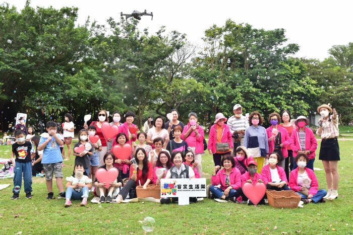 桃園市政府客家事務局局長黃傅淑香開心與民眾合影。