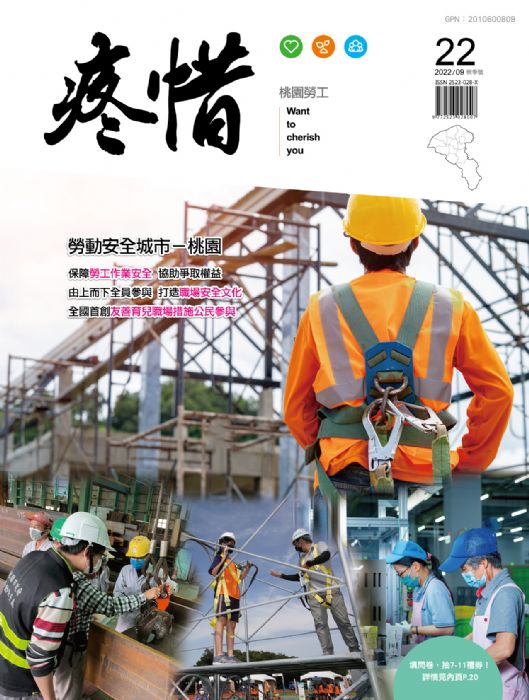 《疼惜桃園勞工》第二十二期已於9月出版,本期封面故事主題為「勞動安全城市-桃園」,內容包括「保障勞工作業安全 協助爭取權益」、「由上而下全員參與 打造職場安全文化」、「全國首創友善育兒職場措施公民參與」等議題,多元內容精彩可期,請別錯過!