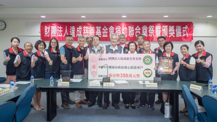 桃園市副市長李憲明30日下午於市府,出席「財團法人達成慈善基金會捐助聯合奠祭活動暨頒獎儀式」,接受基金會捐助並頒發感謝獎牌。李副市長表示,達成慈善基金會自101年起連續11年捐助市府社會救助基金愛心專戶,總金額達1,428萬元,今(30)日再次義助350萬元提供聯合祭奠使用,協助弱勢者購買愛心棺木、骨灰罐、壽衣及蓮花被等,讓往生者完成人生最後莊嚴的告別儀式,對於達成基金會熱心公益、關懷社會弱勢,市府也表達最大的肯定、最深的感謝。