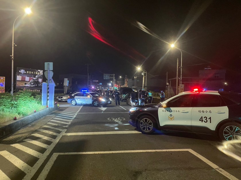 楊梅警分局「閉鎖式路檢」勤務,遏止改裝車聚集製造噪音影響民眾安寧。