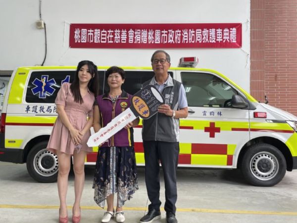桃園市觀自在慈善會因感社會上有許多需要幫助的人,8日再度捐贈救護車給桃園市政府消防局,集結近千位只問付出,不求回報,於社會默默行善的會員力量,團結送愛心,自民國93年起陸續捐贈至今,已累計16輛救護車。用最實際行動支持消防局救護工作,捐贈桃園市政府消防局新式救護車1輛,對社會付出及貢獻功不可沒,亦希望此救護車未來可以幫助更多需要緊急救護服務的病患。