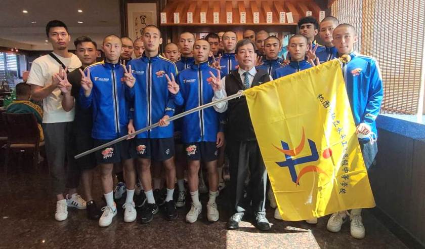 永平工商籃球隊將前進花蓮,永平工商校長胡劍峯授旗,挑戰隊史第六屆HBL甲級比賽。