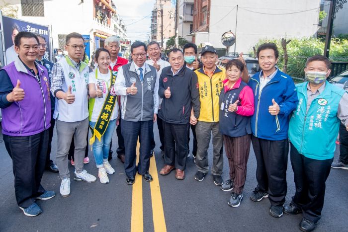 鄭文燦指出,自升格後,市府透過推動「開瓶計畫」,逐一克服土地取得、建物拆遷等困難,已推動上百條道路拓寬改善工程。而龍南路是平鎮串聯大溪的要道,亦是平面道路銜接台66線與國道3號的主要道路,透過與農水署石門管理處積極協商,市府已優先運用國有地、水利地降低土地徵收費用,將龍南路(新生路至八德區仁和路)第一期工程約276公尺道路,由原先雙向兩車道,拓寬為路寬30公尺雙向四車道,本次則再打通龍南路654巷瓶頸道路,展現小工程、大效益的價值。
