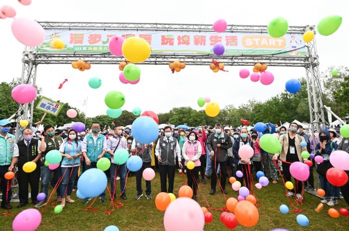 桃園市長鄭文燦29日上午前往八德埤塘自然生態公園,出席「111年桃園市八德區全民健走活動」時表示,健走是全民運動,能降低三高、保持健康與活力,因此近年市府積極推動埤塘健走活動。今日全民健走由八德埤塘自然生態公園出發,途經指玄宮等補給站後返回主會場,路線全長約4公里,吸引約9,000人參與,走完全程後可兌換健行登山背包,並參加摸彩,有機會將Gogoro機車、iPhone14等92項大獎帶回家,希望為八德鄉親帶來健康與滿滿的回憶。