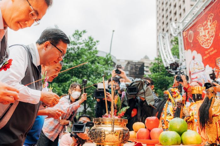 提及,升格後8年來,桃園的經驗哲學就是不斷學習、創新、改正,以開放的精神往前衝;市府團隊努力建設桃園,推動包括博物館、美術館、圖書館、國民運動中心、親子館、公托中心、共融式公園、河川整治、下水道、節慶活動等各項政策,讓桃園不斷進步、成為宜居城市,8年來人口逆勢成長21萬6,000人,來自各地的多元族群定義了新的「桃園人」。包括市府文化局長莊秀美、民政局長陳靜航、資科局長余宛如、桃園區長洪清淵、景福宮主委簡征潭等均一同出席。