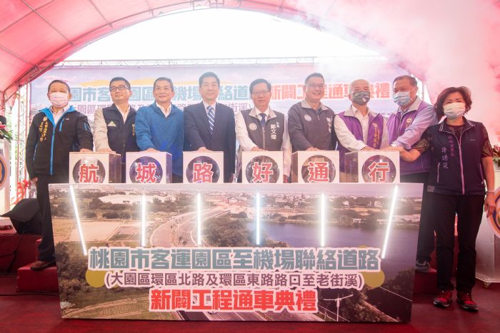 桃園市長鄭文燦1日上午前往大園區,出席「桃園市客運園區至機場聯絡道路工程(大園區環區北路及環區東路路口至老街溪)新闢工程通車典禮」。鄭市長表示,為完善大園周邊聯外交通水準,市府與內政部合作,推動客運園區至機場聯絡道路工程,工程全長約3.4公里,分為二期施作,今日通車的第一期道路,考量為航空城聯外道路,由營建署施工,以大園區環區北路及環區東路路口為起點,沿大園都市計畫範圍邊界抵達老街溪終點。