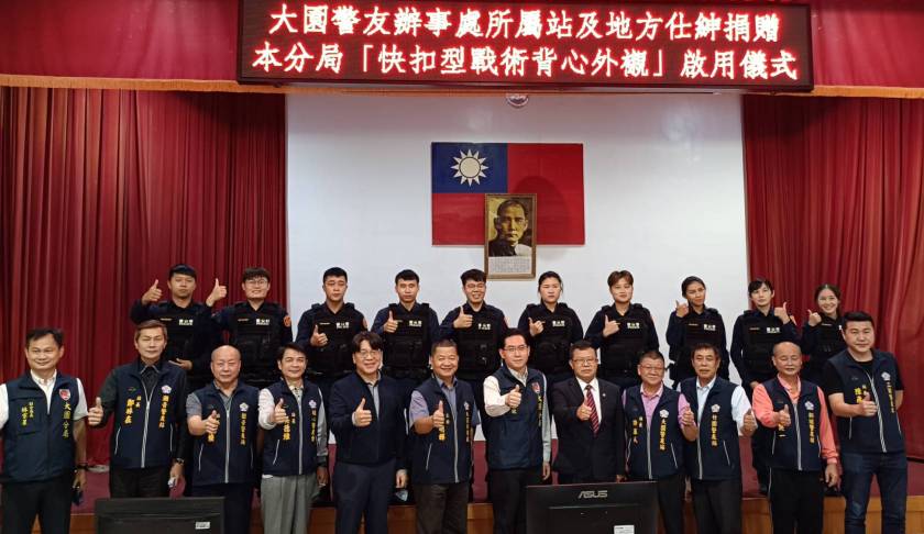 今年8月台南發生震驚社會的殺警命案,引發各界關注,為提升員警執勤安全,桃園市警察之友會大園辦事處主任李明輝及各警友站站長、桃科環科大潭廠協會理事長黃輝彬、富廣昇建設開發有限公司副總經理崔富治等地方仕紳,聯合致贈防彈背心襯套予大園分局員警使用,讓員警在執勤上能更加安全便利。