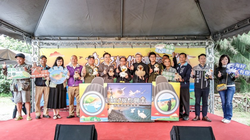 2022候你歸來-許厝港濕地賞鳥節活動5日在大園老街溪出海口賞鳥亭盛大登場,桃園市政府環境保護局呂理德局長於開幕致詞時表示,去年12月辦理窺見許厝港濕地秘境賞鳥活動,獲得很大的迴響,因此今年擴大辦理規模,特別與桃園市野鳥學會、國巨洋傘文創園區合作,在11月5日至20日活動期間,每週六、日下午1點到5點提供賞鳥導覽解說、闖關遊戲、候鳥地景藝術,多項DIY體驗及繪本說故事課程,並首度在國巨洋傘文創園區內舉辦許厝港濕地特展,展出曾義和老師過去30年來紀錄水鳥的珍貴照片,為許厝港濕地變遷留下歷史見證,請來賞鳥的民眾不用準備器材,只需懷著一顆期待的心,讓解說員帶著您一同欣賞這群飛越千里而來的北方嬌客,深入認識這片濕地的美好。