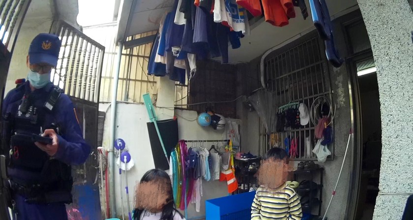 八德分局廣興派出所警員唐可欽、朱國瑋於日前10時許,接獲報案,八德區龍江路有2名小朋友獨自在家沒有上學,員警趕到現場處理,敲門後有二個小朋友(高男7歲、高女5歲)前來開門,警方詢問下原來是媽媽離婚後帶小朋友與阿公同住,但是媽媽經常不在家,都是阿公在照顧他們,阿公在早上6點就出門上班了,但是有留錢給小孩子購買東西,2名小孩獨自在家無人照顧也沒去上學。
