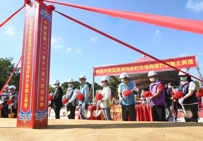 行政院環保署副署長沈志修表示,桃園8年來人口成長約21萬人,垃圾量及資源回收量也隨之增加。然而,桃園全年資源回收率高達65%,高於全國平均59%,表現值得肯定。沈副署長指出,由於資源回收量持續提高,桃園目前的資源回收細分類廠量能已不敷使用。因此,環保署及桃園市政府今(111)年啟動規劃新建南、北2處資源回收貯存場計畫,將作為區域資源回收物之分類、暫置調度場所,可望紓解資源回收廠量能不足的現象。此外,本次園區興建使用再生材料比例高達54%,包括再生瀝青混凝土、環保透水性地磚等,未來太陽能板設施綠電發電容量亦將達到1.32百萬瓦,將成為資源循環的園區典範。