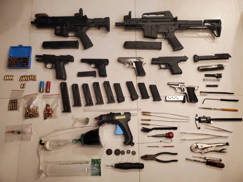 除於犯嫌身上起獲1把已上膛之手槍外,再於旅館房間及供做改槍工廠之住家搜出改造長槍1把、衝鋒槍2把、改造手槍4把、改造子彈共73發、彈匣9個、改造槍枝零組件、改造工具各一批及毒品等贓證物,火力相當驚人,全案依違反槍砲彈藥刀械管制條例及毒品罪嫌,移請臺灣新竹地方檢察署偵辦,並持續追查槍械是否涉及其他刑案。