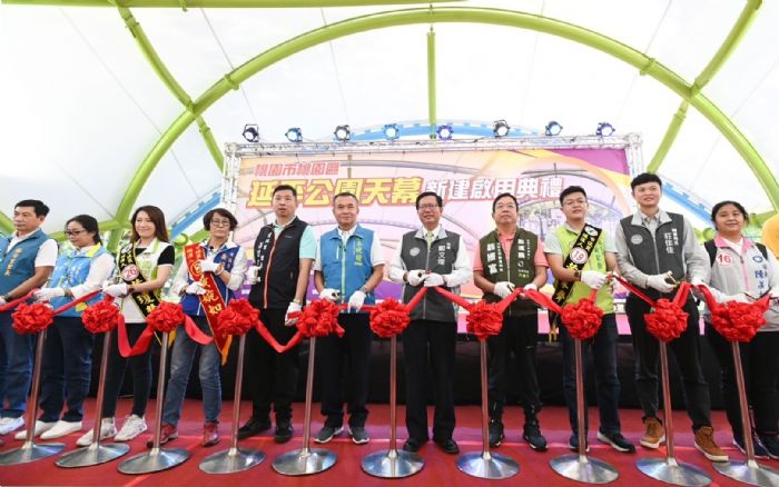 桃園市長鄭文燦15日下午前往桃園區,出席「延平公園天幕新建工程啟用典禮」。鄭市長表示,延平公園為典型的親子公園,設有兒童遊戲場、籃球場、溜冰場、健康步道等設施,且公園內樹木生長茂密,猶如一座小型森林公園,惟因籃球場年久設備老舊,經市府積極協助,由桃園區公所辦理更新工程,總經費約1,536萬元,改善既有老舊籃球場,並增設與景觀相容的天幕及夜間照明設備等,提供在地民眾打籃球、練習太極拳、舞蹈或舉辦市集、活動等的多功能優質空間,白天到晚上都能使用,讓延平公園的機能更加完善。