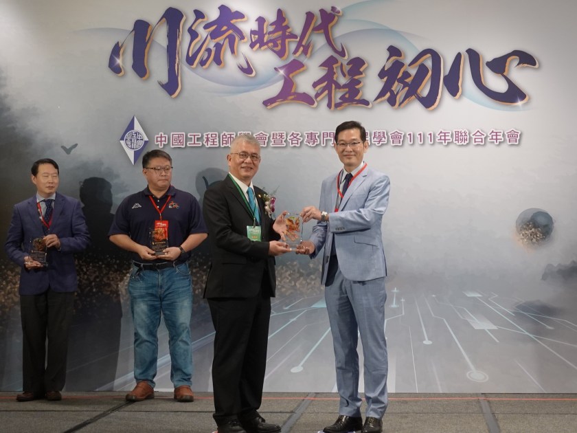 中國工程師學會年會暨頒獎典禮,中原大學主秘閻亢宗(右一)代表中原與會並接受表揚。