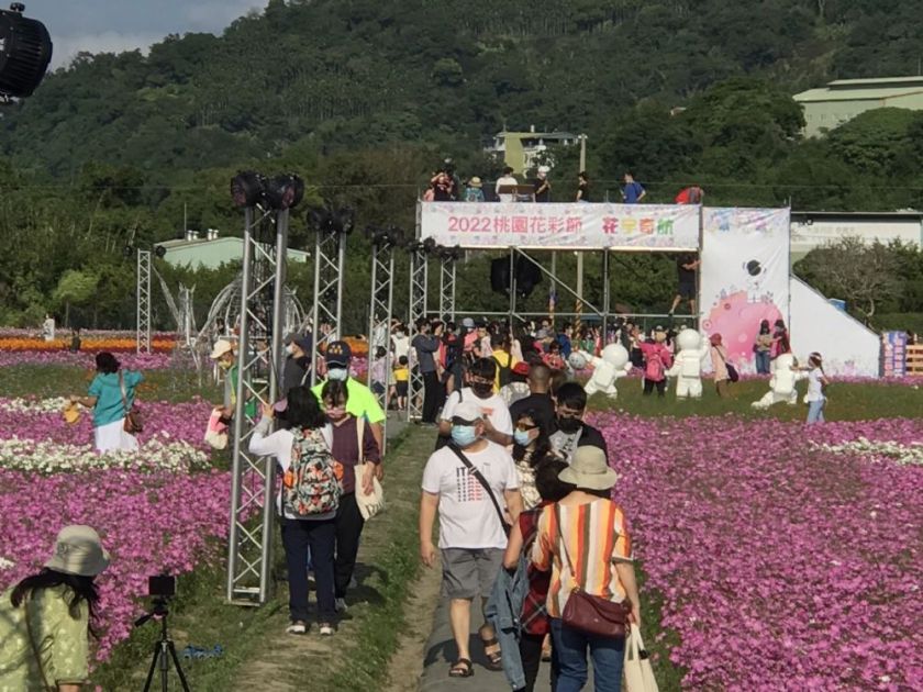 2022桃園花彩節於11月20日於大溪月眉休閒農業區精采落幕,今年雖自11月12日才開展,但因副展區花田提早綻放,配合花況提早於11月4日設置觀景高台,帶動一波搶先看的遊客,加上開展後13種可愛吸睛的裝置藝術、綻放的主展區花海圖騰及絢爛的夜間光雕秀,期間共吸引逾60萬人潮前往參觀。