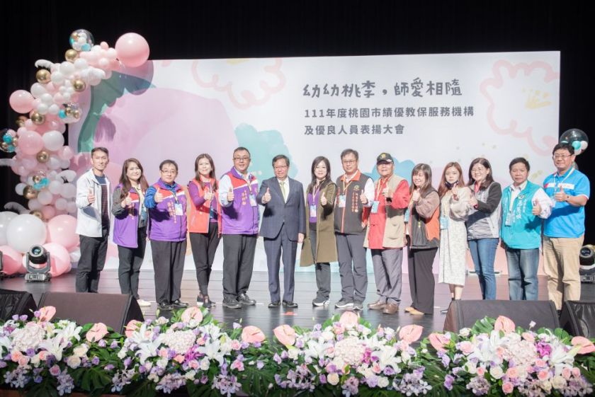 桃園市長鄭文燦3日上午前往龍潭區,出席「111年度桃園市績優教保服務機構及優良人員表揚大會」。鄭市長表示,桃園是年輕家庭的首都,在學齡前托育及幼教需求皆為最高,因此,桃園升格後積極推動生育補助、育兒及幼教津貼,中央後續也跟進「0-6歲國家一起養」政策。在幼教領域中,不但需要優質平價的幼教環境,幼教人員也應獲得最大的保障,以及政府的政策支持,讓公立、非營利、準公共或一般私立幼兒園,都能獲得更好的發展。鄭市長指出,因為桃園有優質平價的幼教環境,這是許多年輕家庭選擇在這裡追求人生幸福的吸引力之一,他也特別感謝所有教保服務機構、教保服務人員、廚工、司機、行政與護理人員的重要貢獻,期許未來持續全力以赴,一起推動更友善溫馨的教育環境。