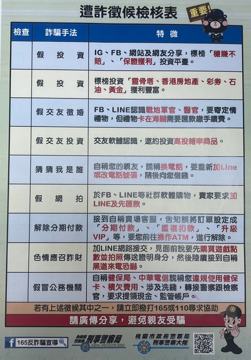 龍潭分局提醒民眾,檢警調機關絕不會以電話告知民眾因涉及犯罪而需監管財產、帳戶之作法,若有任何類似的來電,即為詐騙電話,切勿輕易採信,警方亦將持續秉持強勢執法決心,保障民眾之財產安全。