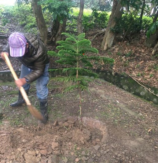 有合適的地點也需用對方法,民眾將植栽領回後依照植樹SOP:1.整地2.挖植穴,穴徑為土球之1.5-2倍,深度應深於根球20-30公分3.先於植穴底部放置土壤,使根球置入時可與地表同高,拆除根球包覆材,保持植物直立於周圍填入土壤4.若栽植較高或在風大的地方應以支柱撐扶,以免因倒伏或搖動而影響根系生長5.注意補充水份,澆水頻率視種植環境及天候狀況進行調整,待土面燒乾再進行補充,以免補充過多水分影響根系生長6.待植物長出新芽方可施肥,並注意病蟲害防治。