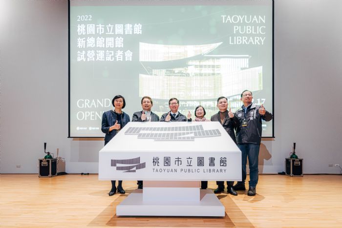 桃園市長鄭文燦(17)日上午前往桃園市立圖書館新總館,出席「新總館開館試營運記者會」時表示,市民等待很久、期盼很久,桃園市立圖書館新總館終於克服所有挑戰,於今日開館,建築以「生命樹」為概念,採用節能採光通風井、綠色螺旋、環保外皮等綠色低碳設計,軟體則引進RFID技術、自動還書及預約座位系統、多媒體中心、VR沉浸式體驗等內容,打造一座嶄新、高標準的圖書館,獲得2018「國家卓越建設獎-最佳規劃設計類」及2022「公共工程金質獎」肯定,將成為桃園的文化地標、文化綠洲。