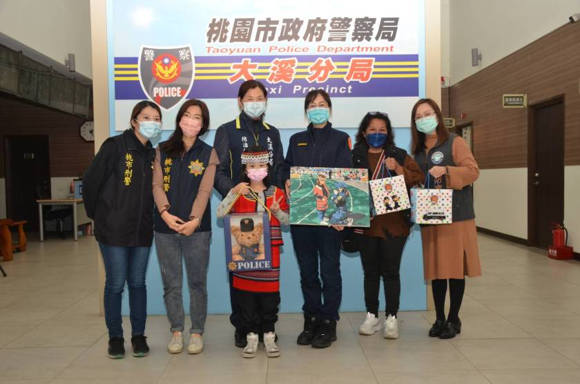 大溪分局交通組警務員廖釨淓,在聖誕節前夕親手繪製一幅油畫及小禮物,送給就讀復興區介壽國小1名二年級學童做為聖誕節禮,勉勵學童要用功讀書孝順長輩,16日在學童阿嬤陪同下前往分局受贈,畫作真情流露呈現學童的天真與警方的熱誠,該名學童收到畫作露出靦腆微笑,阿嬤開心的表示這是女童收過最特別的聖誕禮物。
