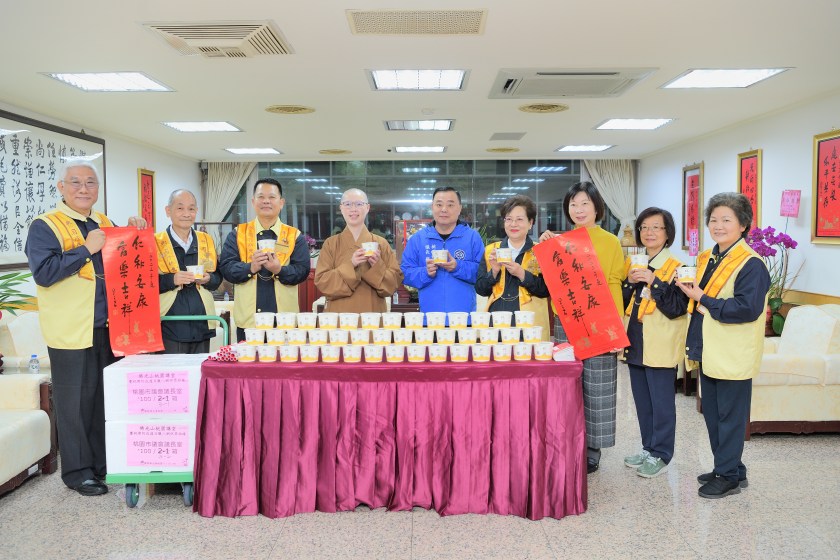 佛光山桃園講堂住持覺元法師29日上午與佛光幹部,致贈臘八粥到桃園市議會結緣,並致贈星雲大師墨寶「仁和安康 富樂吉祥」。盼望大眾在2023年,仁和,以和為貴;仁慈,自然安康;富貴快樂,一生吉祥如意。也期許世界和諧、社會和平、不再戰爭。
