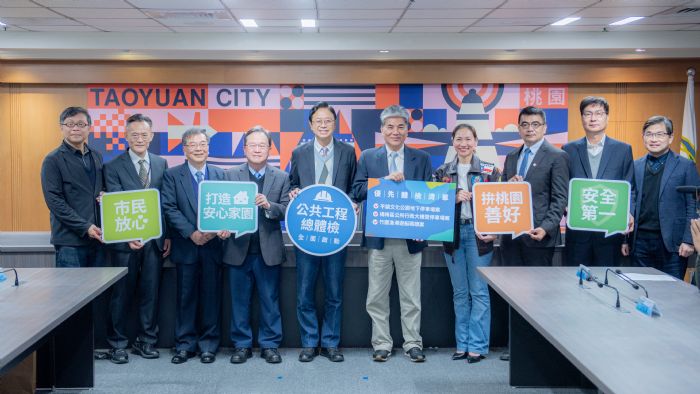 桃園市長張善政(30)日上午於市府出席「桃園市政府公共工程總體檢全面啟動記者會」。張市長表示,為保障市民安全,正式啟動既有桃園公共工程的總體檢,邀請外部專家學者組成「桃園市政府公共工程體檢委員會」,透過委員會找出問題,並重新檢視制度面的缺失、進而補強,初期將以平鎮文化公園地下停車場、楊梅區公所行政大樓暨停車場、竹圍漁港遊艇碼頭為重點,目標是在就職百日內提出報告,其餘工程案也將陸續列入體檢項目,讓工程案達成如質、如期、如預算的3大目標,打造宜居城市,創造高品質的公共環境,讓市民得以安心使用公共設施。