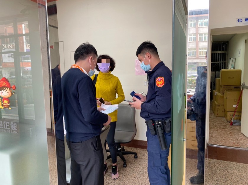 楊梅警分局於111年12月28、30兩日,分別接獲轄區內金融業者臺灣中小企業銀行及渣打銀行通報,均為行員在替民眾辦理臨櫃匯款業務時發現疑似有遭詐騙情形,進而通報派出所員警到場處置,在員警耐心解說之下,民眾才驚覺掉入詐騙陷阱,避免了金錢上的損失。