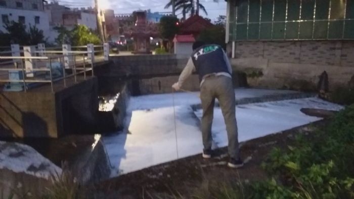 環保局接獲通報後,立即派遣2組稽查人員火速前往,於30分鐘抵達現場,見霄裡分渠福德橋下有泡沫漂浮情形,兵分兩路沿該水路向上游進行追查,逐一清查沿線可疑排放源,最終發現該工廠放流口有泡沫產生,並採水樣送驗,若超過放流水排放標準,將依違反水污染防治第7條規定告發,最高可處2000萬元罰鍰。
