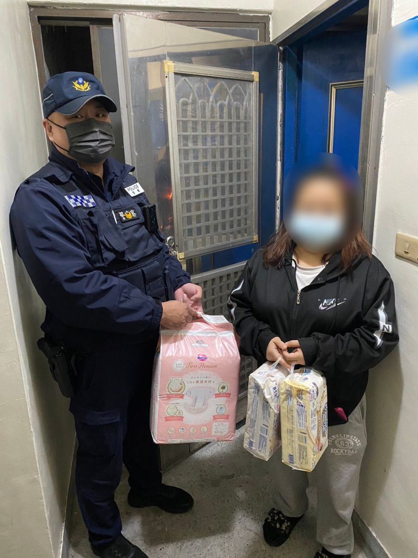 由於張女平時需要照顧女兒無法專心工作,只能靠育兒津貼及打零工維生,生活頓時陷入困境,簡員查訪得知主動關懷聯繫,立即自掏腰包準備嬰兒尿布及民生物資等;並協助轉介平鎮區公所及張榮發基金會等社福單位辦理急難救助,希望能幫張女暫時度過難關。警察主動熱心的協助,也讓張女相當感激。