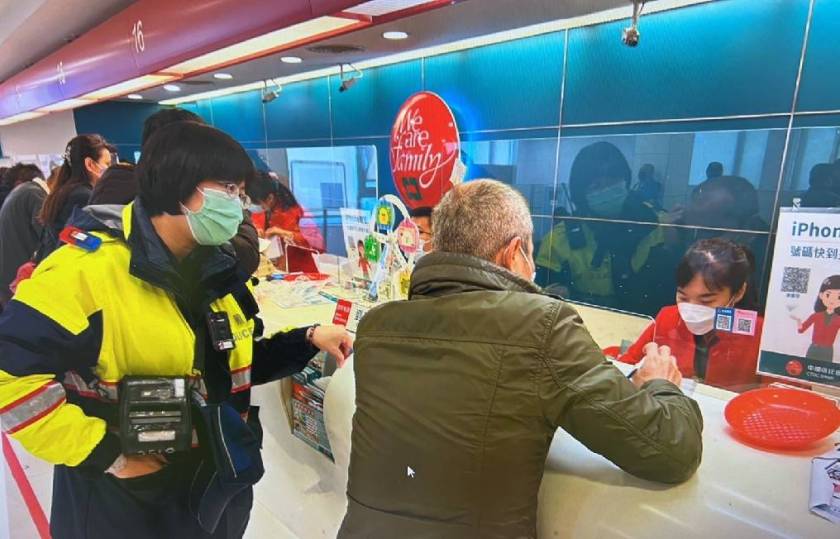 56歲廖姓男子7日上午9時,獨自前往蘆竹區中正路上的中國信託商業銀行南崁分行打算匯款,由於款項金額高達新臺幣28萬,且男子語焉不詳,故引起行員注意,蘆竹分局南崁派出所警員林宜萩、李奕緯兩人獲報前來瞭解後,確認男子是受到詐騙,在一番苦勸後,才成功勸阻。