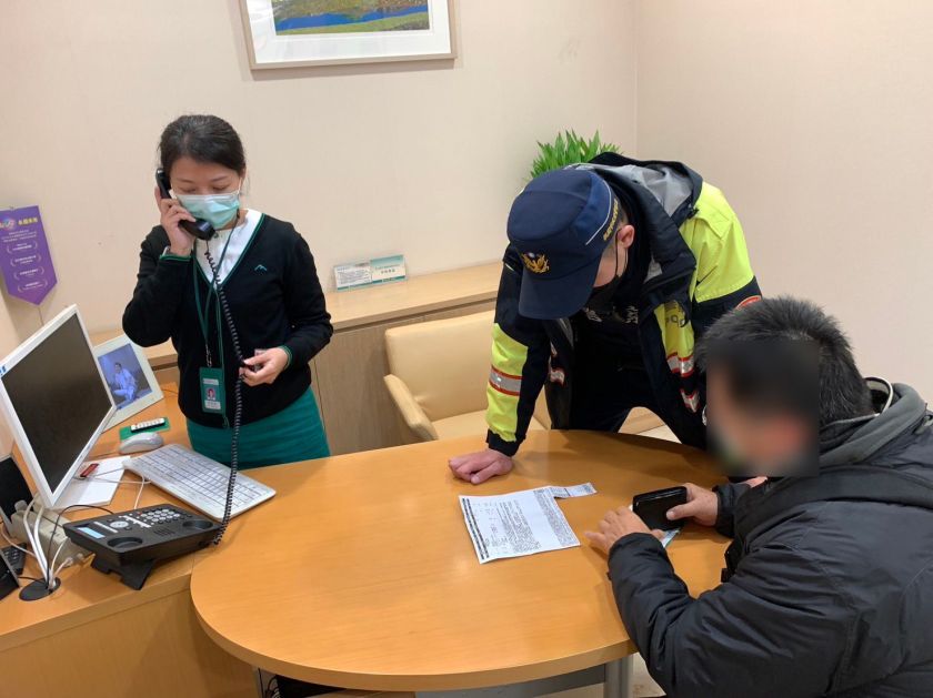於是老翁拿著信用卡跑到銀行準備直接刷卡新臺幣30萬元購買產品,但由於刷卡金額太過龐大,且老翁在準備刷卡時不斷的說電話,讓承辦的行員察覺有異,老翁對行員的關懷提問完全置之不理,行員見狀趕緊通知警方到場協助,一起加入勸說老翁的行列。