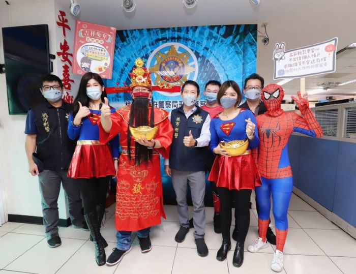 此外,也有男、女刑警們分別裝扮的西方英雄聯盟:男、女蜘蛛人與2位神力女超人,象徵東西方共融,齊力打擊犯罪不宜餘力!將犯罪逐出「桃花園(源)」之決心,英雄們頭戴麥克風沿路宣導提醒民眾、手持吸睛喜氣預防犯罪手舉牌、發放繪製喜兔的宣導紅包袋,活潑可愛的喜兔呈現滿滿活力與喜氣,也印製相關預防犯罪文案提醒民眾,各項素材皆喜氣、實用,達到預防犯罪良好效果,民眾反應熱絡外,未索取到喜氣宣導品的民眾紛紛詢問刑警們何時再至市場宣導,相關影片也於同時間在官方臉書(桃園刑大預防犯罪宣導)直播,並規劃之後舉辦相關線上活動,以提升民眾對春節期間容易遭遇之犯案手法〔防詐、反毒、防(竊)搶〕之認知、提升保護自身安全意識及思維,避免遭遇詐騙、毒害,或人身安全之危害(防竊搶)。