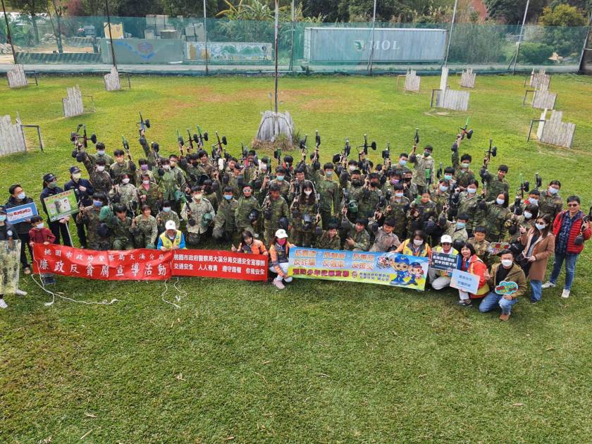 大溪警分局相當重視本次活動的進行,分局長徐坤隆特別到現場與青少年互動交流並宣導學子拒絕誘惑、遠離毒品,活動中並舉辦反毒品、反詐騙有獎徵答,答對可獲贈宣導品,現場青少年十分踴躍,題目還未念完一大堆爭先人舉手,透過漆彈射擊課程的體驗與對戰活動,運用「積分戰」與「任務戰」,使來自不同學校、家庭的學生從中學習,進而培養領導統御、互助合作及團隊競賽榮譽感,創造歡樂回憶及自我肯定;由於活動地點是青少年的遊樂天堂,每個都玩得不亦樂乎。