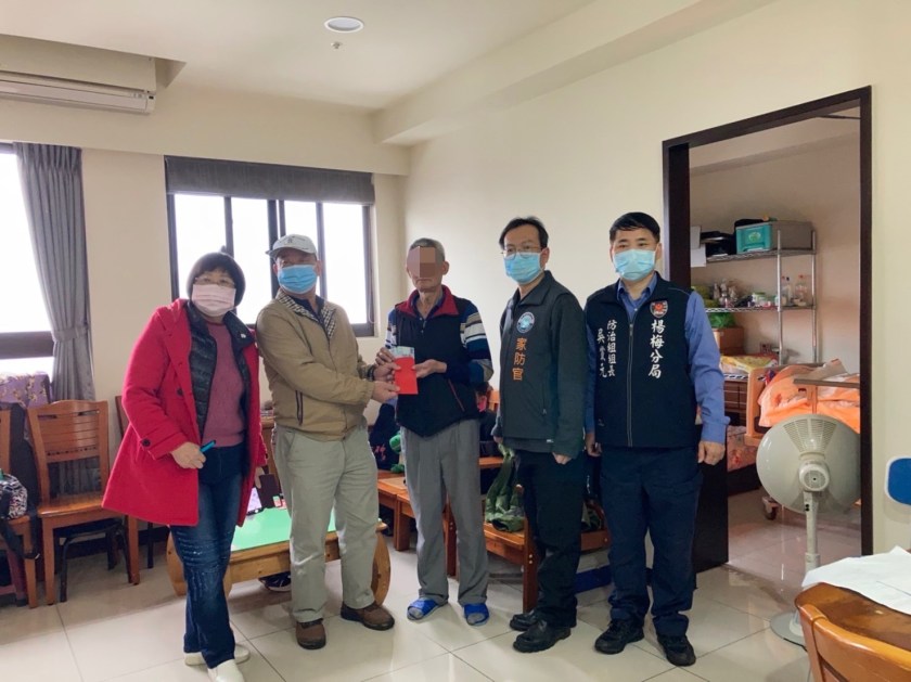 楊梅警分局表示,該分局防治組組長吳黨元及家防官陳毅樺主動查訪得知轄內上述兩戶弱勢家庭急需關懷救助,隨即結合「楊梅世大愛心協會」於2月7日由前會長羅鳳珠、現任會長李双福及總幹事梁維坤等志工先將紓困金5000元親自送到弱勢民眾家中,讓他們能好好照顧家人,並評估日後協助事宜,讓原本愁容滿面的民眾,頓時放下心中的石頭,也感動的表示非常感謝員警、世大愛心協會及區公所在寒冷的冬天幫助弱勢家庭,讓他們心中感受到社會的溫暖及愛心。