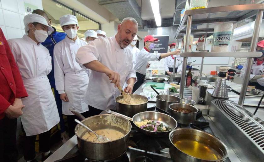 瑞士烹飪藝術學院主廚Chef Alain進行西餐烹調教學。