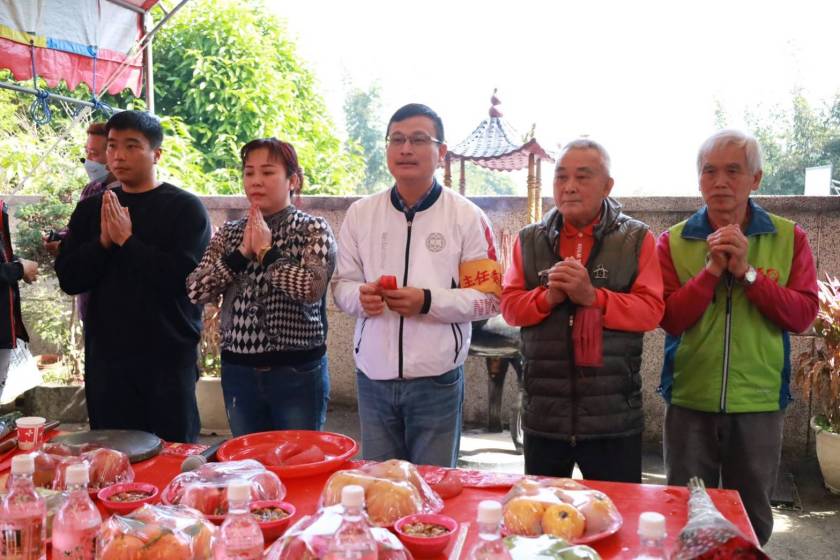 桃園市政府客家事務局為慶祝伯公生日(農曆二月初二日),19日就近在龍潭區大四方林開庄伯公廟舉辦別具特色的客家伯公生慶祝祈福儀式,敬備鮮花、素果及壽龜等客家特色供品慶祝伯公生日,由局長林昭賢擔任祝壽儀式主祭,遵循禮法敬拜伯公,為市民祈求平安順利。