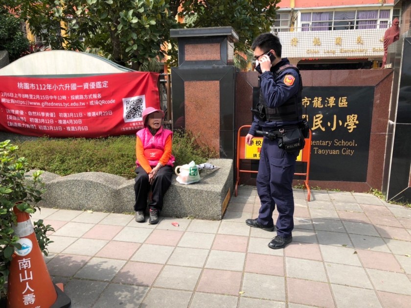 草湳派出所巡佐徐力耘、警員葉承錠駕駛巡邏車前往失去蹤影的地點尋找,最終在約6公里外的龍潭區潛龍國小附近找到毛姓老婦人,並通知老婦人家屬到派出所領回,家屬見至親平安歸來,由衷感謝警方的大力幫忙,並對於警方守護地方之用心、盡心大為讚許。
