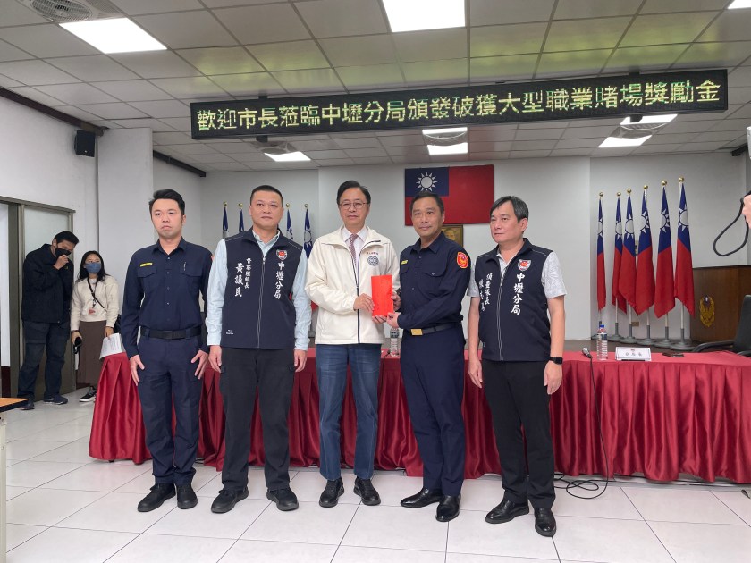桃園市長張善政10日親至中壢警分局頒獎,對中壢警察團隊破獲大型百家樂賭場、淨化轄區環境治安的成果表示肯定。中壢警察分局為強化掃蕩黑幫,落實「社區警政再出發」及「清源專案2.0」工作,清查轄內可能潛藏之賭博機房、大型賭場及幫派經常活動等高風險處所。