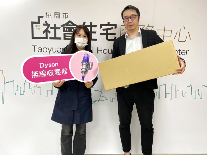 (圖左為頭獎幸運得主,圖右為桃園市社會住宅服務中心執行長彭程)